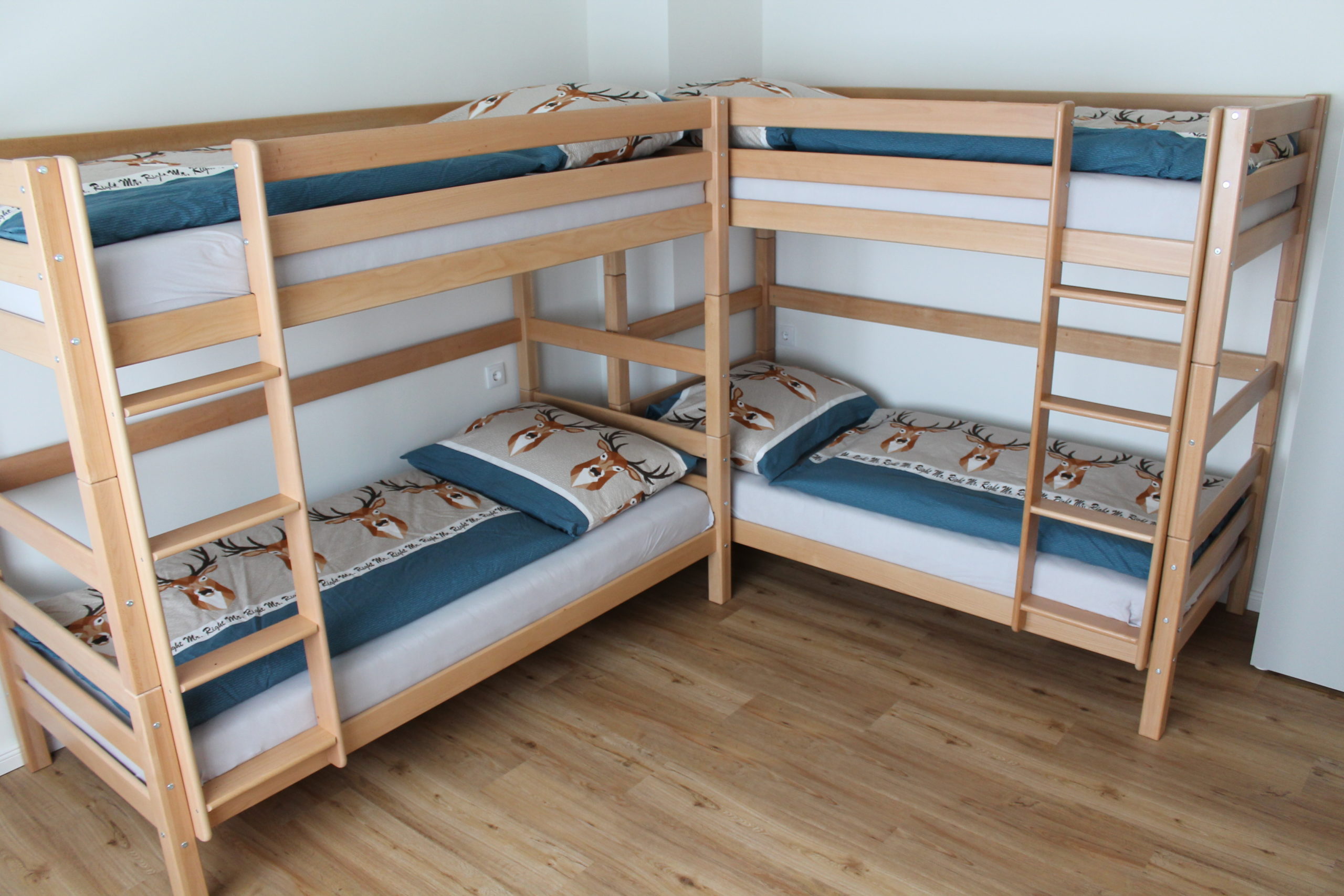 Beschreibung der Schlafräume: Unser Haus umfasst 4 Apartments in verschiedenen Größen (35, 50 und 100 m2) und eine gesamte Etage exklusiv für euch! Auf 450 m2 stehen euch 8 getrennte Zimmer mit jeweils einem eigenen Bad zur Verfügung. - 7 Zimmer mit jeweils 2 Stockbetten & Badezimmer - 1Zimmer mit einem Stockbett, drei Einzelbetten & Badezimmer