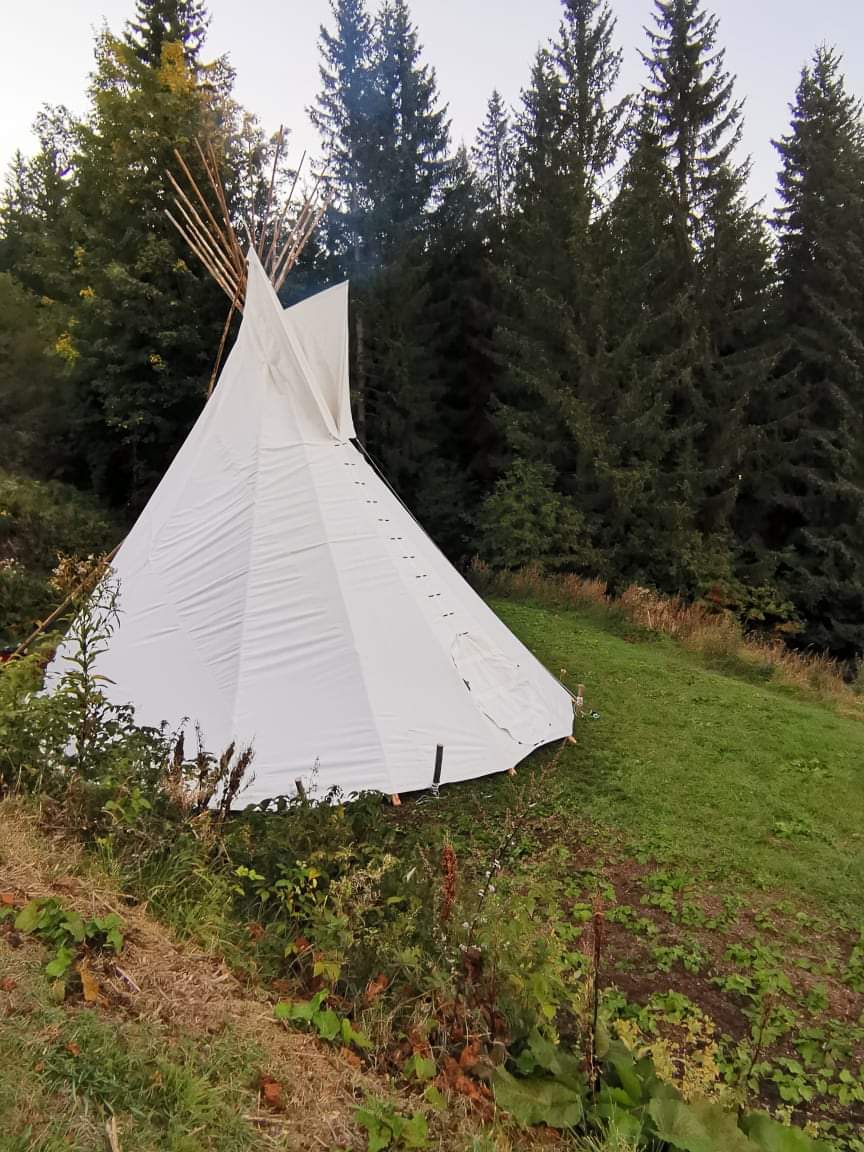 Hauseigenes Tipi mit Lagerfeuer, Grillmöglichkeit, Finnische Sauna, Infrarotkabine, WLAN, Waschmaschine, Essbereich im Freien, TV uvm.